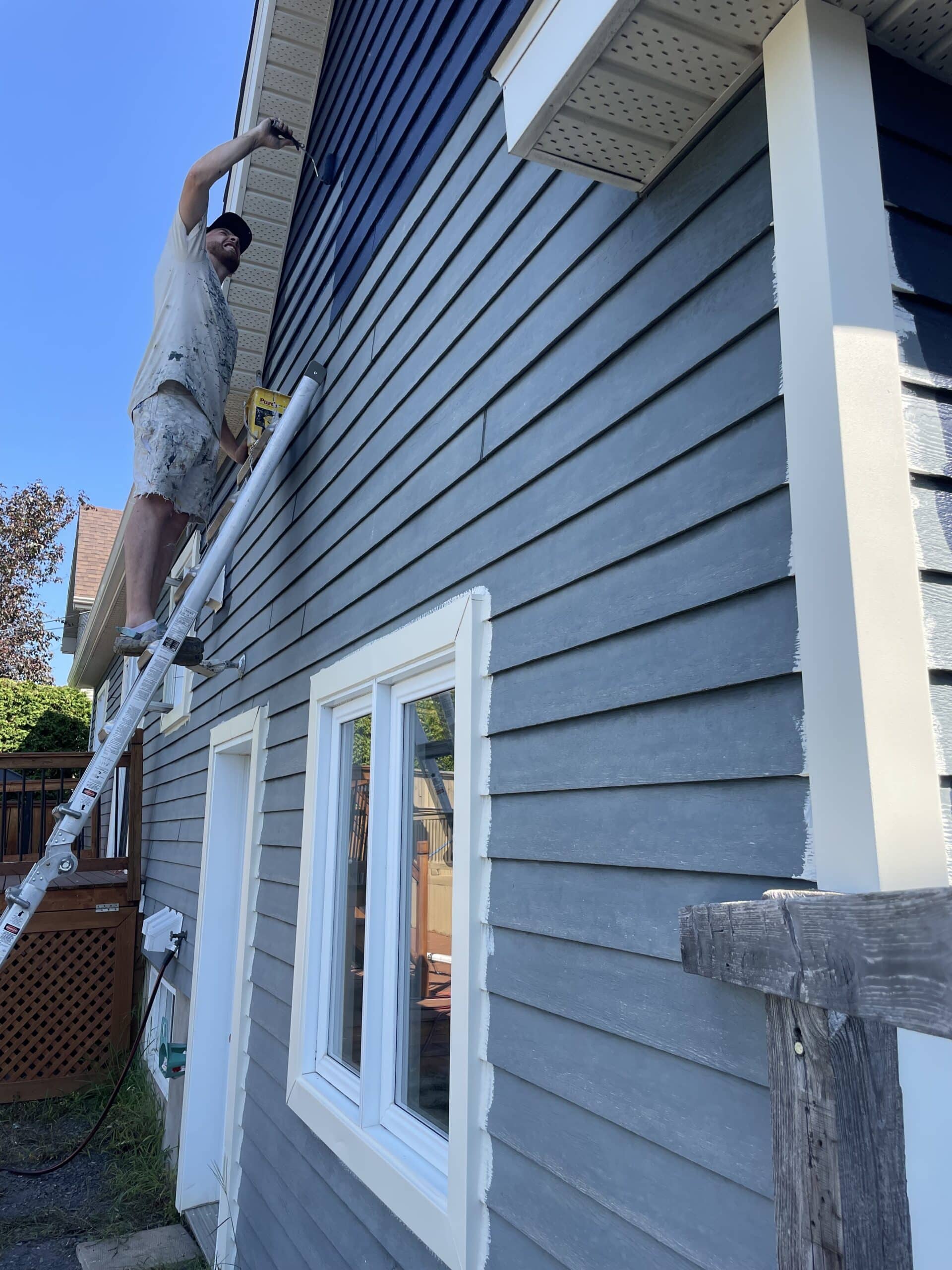 L’extérieur de votre résidence est la première chose que l’on remarque et il joue un rôle essentiel dans la valeur et la durabilité de votre propriété. Les intempéries du Québec mettent vos surfaces à rude épreuve, et une bonne peinture extérieure protège efficacement contre l’humidité, les rayons UV et les variations de température. Nous offrons un service complet de peinture extérieure, allant de la préparation des surfaces jusqu’aux dernières couches de finition. Notre objectif est de préserver et d’embellir votre maison tout en assurant une protection longue durée. Un extérieur bien peint ne fait pas qu’embellir votre résidence, il lui redonne aussi une nouvelle jeunesse et une allure soignée qui fera tourner les têtes dans votre quartier.
